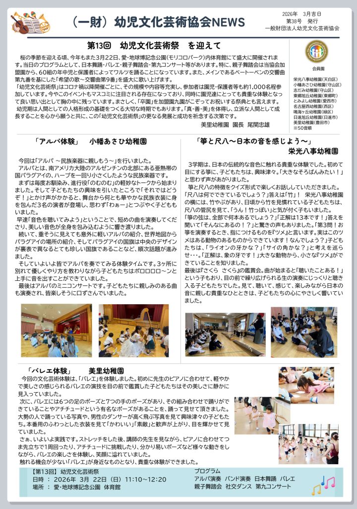 (一財)幼児文化芸術協会NEWS-第38号を発行いたしました。